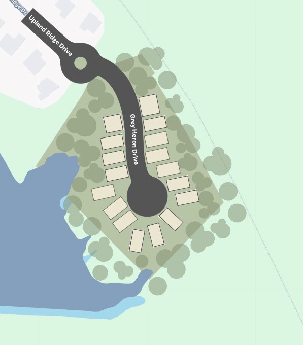 The Villas at Blue Heron is a new construction community of 17 custom-built detached cluster homes along the southeastern end of Blue Heron, encompassing the cul-de-sac street of Grey Heron Dr.