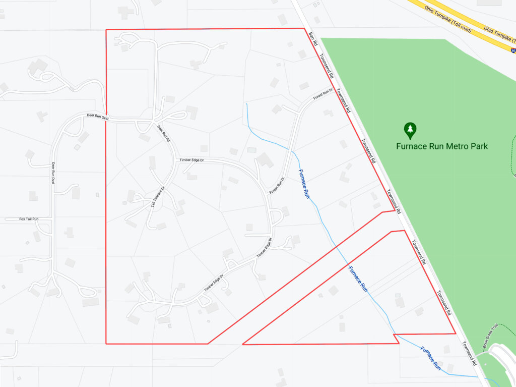 Forest Run is a picturesque community of forty custom-built homes with heavily wooded lots and beautiful rolling terrain, across from Summit Metro Park’s Furnace Run Brushwood Area.