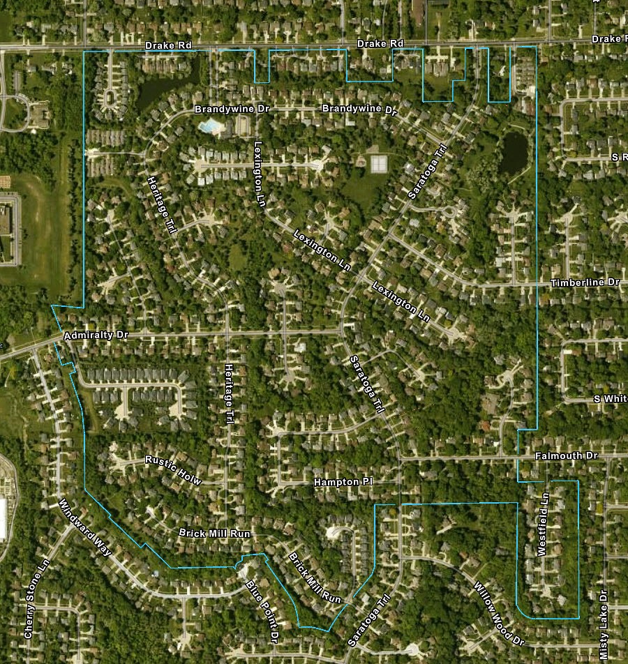 This subdivision is located off the south side of Drake Rd, between Howe Rd and Pearl Rd.