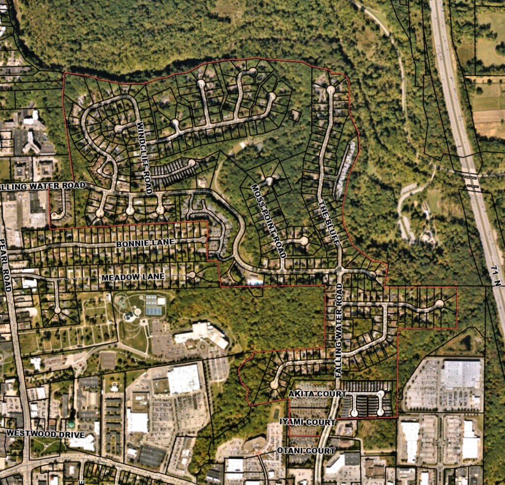 This neighborhood is accessible via Falling Water Rd, with entrances off both Pearl Rd and Royalton Rd (Route 82).