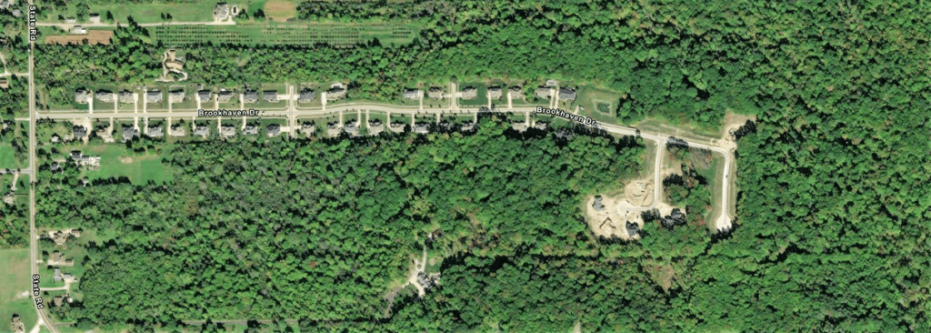 The southeast corner of Brookhaven Dr and its cul-de-sac is bordered by 86 acres of densely forested parkland owned by the Metroparks (green section on above map), providing endless nature views.