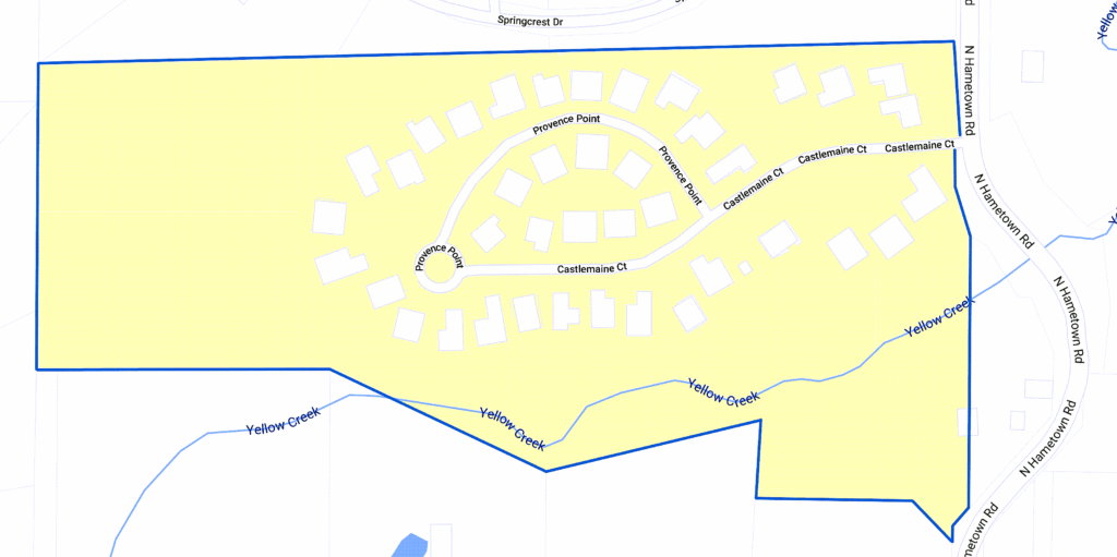 The Reserve at Waterford is a gated community of 41 detached limited-maintenance luxury condominiums in western Bath Township (Akron), Ohio, off the west side of N Hametown Rd, 0.2 miles north of Medina Rd, and comprises the private streets of Castlemaine Ct and Provence Point.