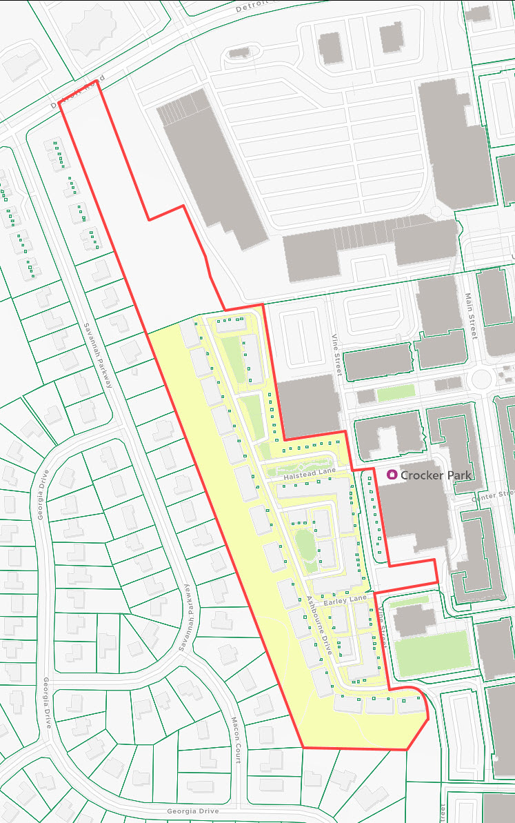 These residences are located just south of Detroit Rd, off the west side of Crocker Rd, and comprise the streets of Ashbourne Dr, Earley Ln, Halstead Ln, Sedgewick Ct, and Vine St.