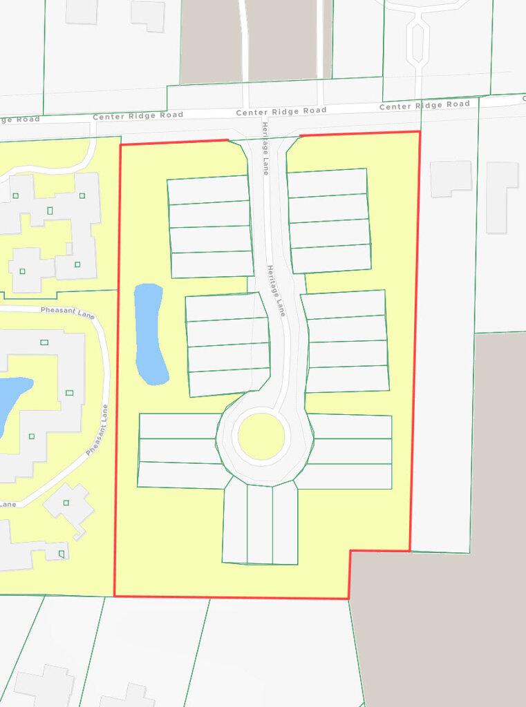Westin Pointe townhomes occupy the private street of Heritage Ln, located off the south side of Center Ridge Rd, 0.3 miles east of Clague Rd.