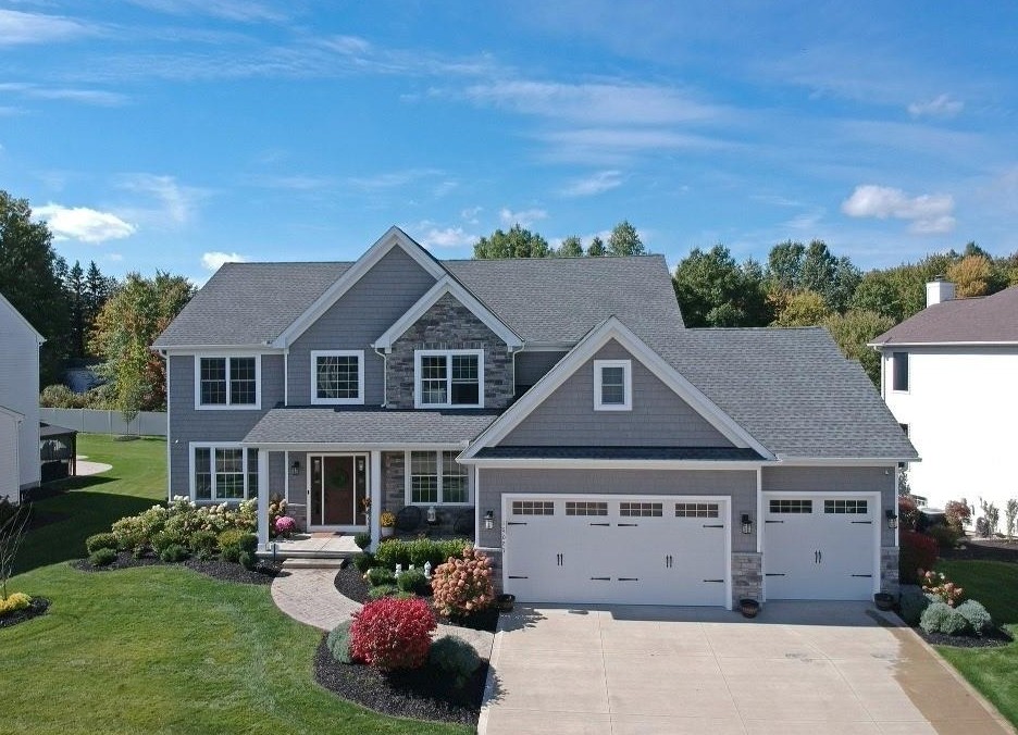 Homes are appointed with desirable amenities including hardwood/LVP flooring, first-floor laundry rooms with utility tubs and cabinets, dramatic two-story foyers with open staircases, private dens, formal dining rooms with tray ceilings, formal living rooms/flex rooms, and fireplaced great rooms two-story or vaulted ceilings and floor-to-ceiling windows that open to kitchens featuring granite/quartz countertops, a center island, breakfast bar, walk-in pantry, dinette or morning room, and even a sunroom. Some homes have first-floor in-law suites. First or second-floor owner’s suites have walk-in closets and glamour baths with separate walk-in showers and soaking tubs, dual sinks/vanities, and enclosed lavatories. Second floors may include lofts/bonus rooms. Finished lower levels (some are coveted walk-outs!) may have bars, kitchens/kitchenettes, media/theater rooms, and exercise rooms.