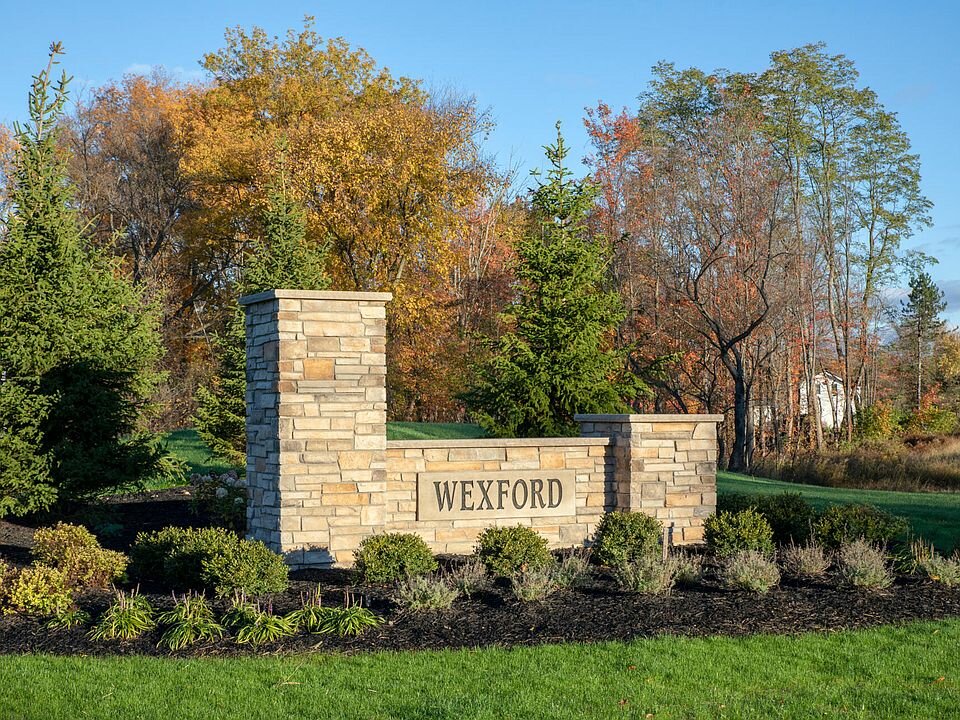 Amenities in Wexford homes include hardwood flooring, formal dining rooms, private dens, great rooms with fireplaces and large windows that are open kitchens featuring quartz or granite countertops, tile backsplash, breakfast bar seating, walk-in pantry, dinette area, and sunroom/morning room. First or second-floor owner’s suites include walk-in closets, and spa-like baths with custom tiled walk-in showers, soaking tubs, dual sinks/vanities, and enclosed lavatories. Guest bedrooms also have walk-in closets. Finished lower levels may have recreation rooms, dens, and bathrooms. Side-entry garages accommodate 2-3 cars.