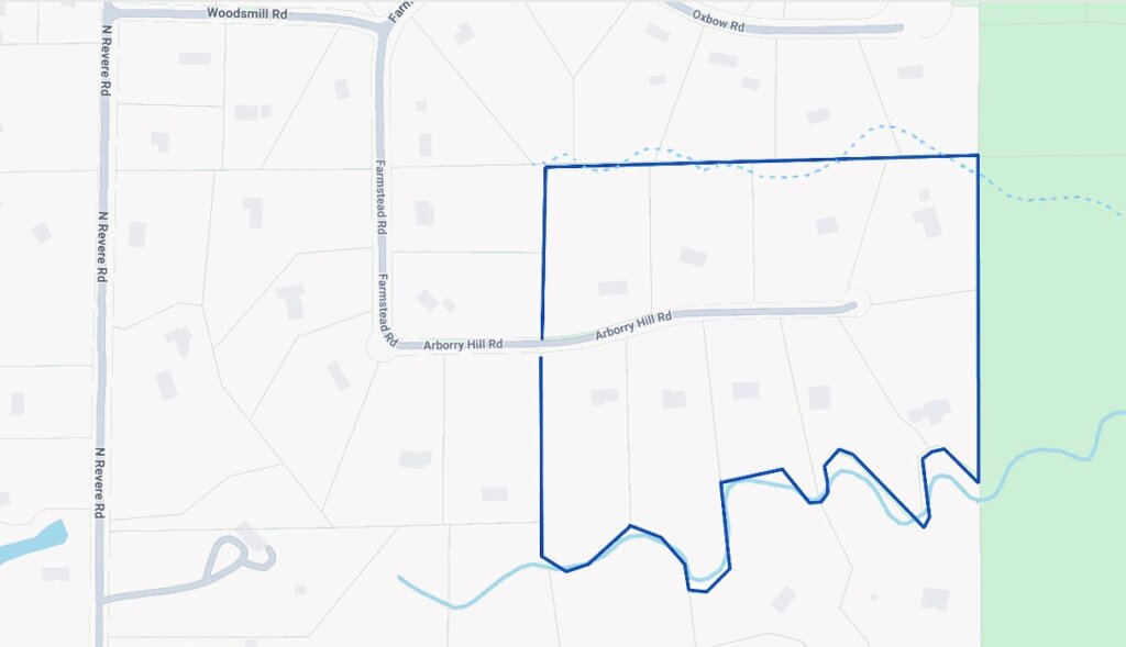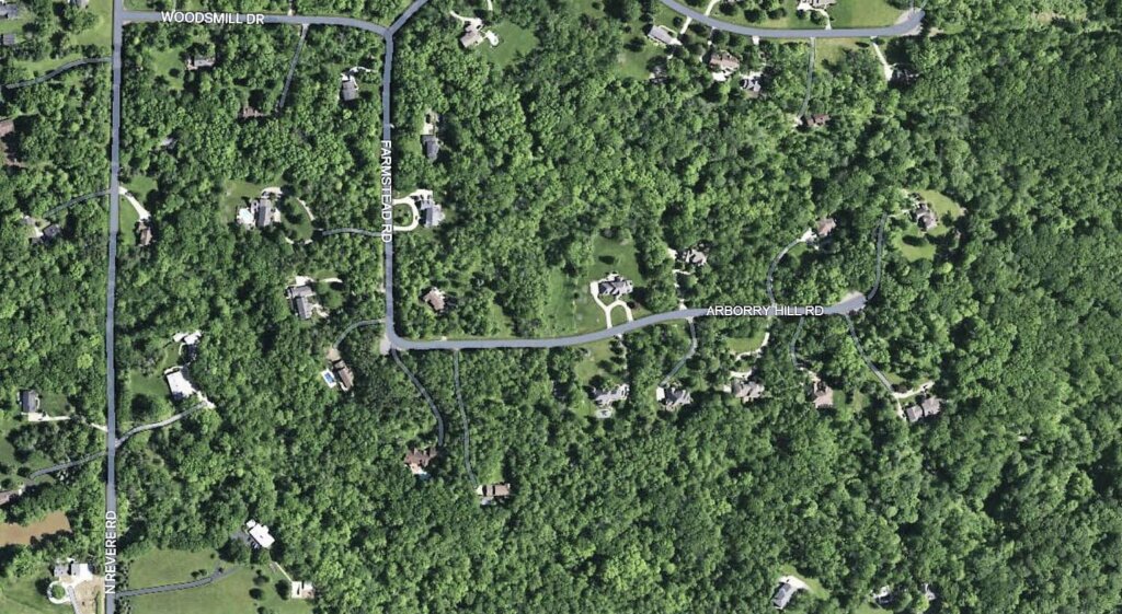 This subdivision comprises most homes (house numbers 2828-2948) on Arborry Hill Dr, also written as Arborry Hill Rd. It is accessible through The Farmstead Subdivision from the south side of Everett Rd and the east side of N Revere Rd.