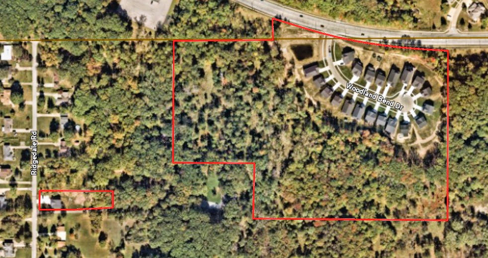 This subdivision comprises the cul-de-sac street of Woodland Bend Dr, located off the south side of W Sprague Rd between Ridge and State Roads, and the model home at 8215 Ridgedale Rd.