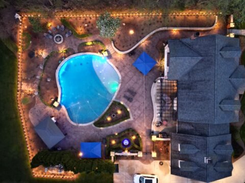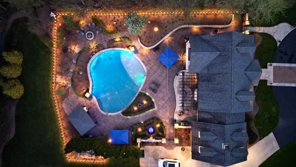At its center is a huge 38′ x 44′ custom Gunite pool—the gold standard of custom luxury swimming pools. Crafted from reinforced concrete and engineered for longevity, this pool is not merely an amenity; it is a legacy piece built to last for generations.