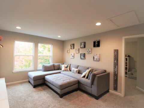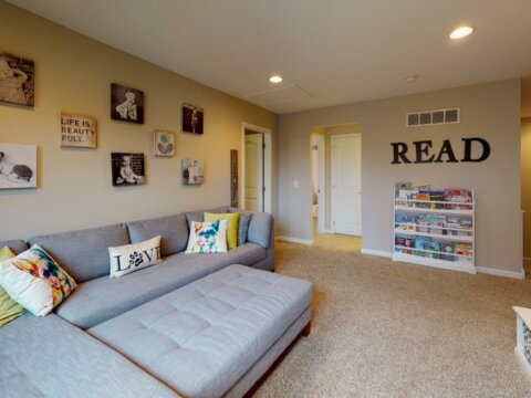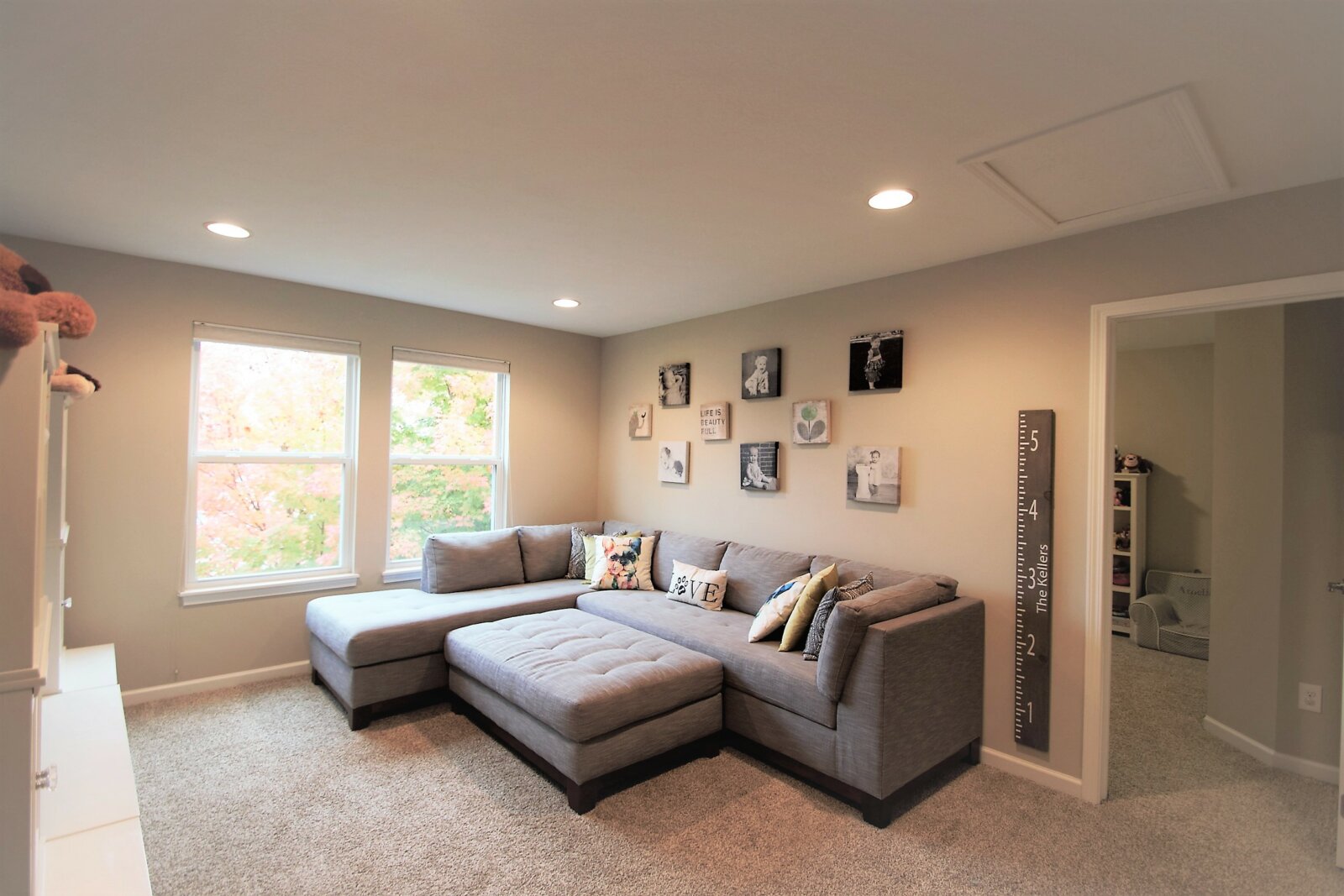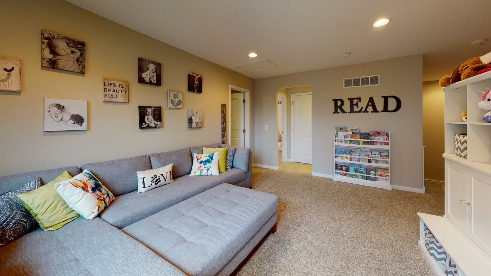 Upstairs includes three bedrooms, two full baths, and a coveted game/bonus room. With upgraded 8 lb padding, the carpeting is extra plush.