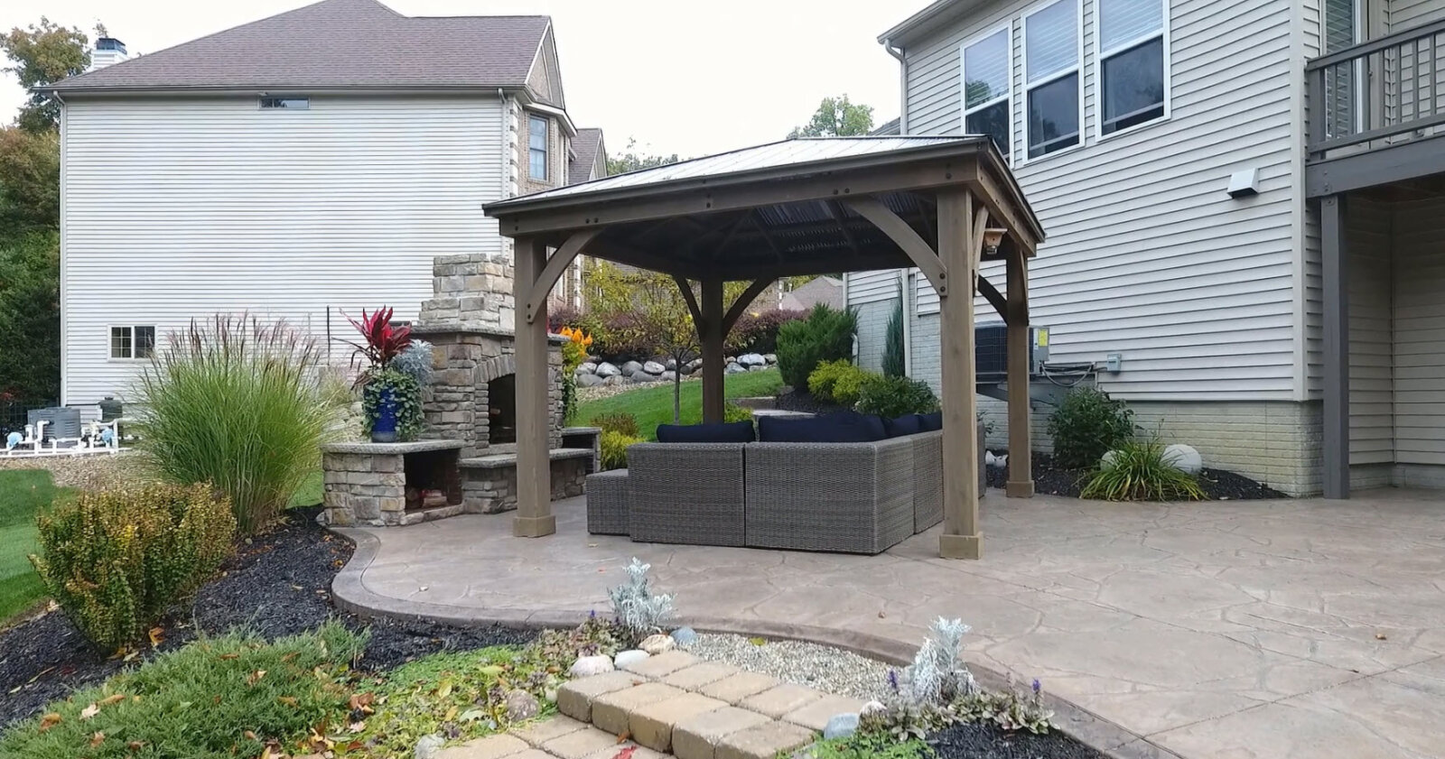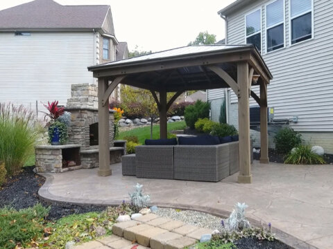 A paved walkway connects the driveway to the patio area so friends and family can easily join your BBQ.